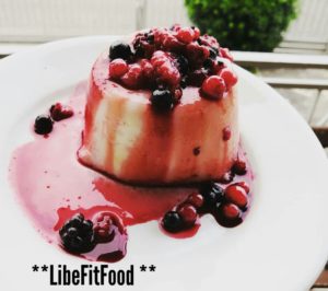 Nella prima versione ho semplicemente scaldato dei mirtilli surgelati con del succo di limone e versati sopra il budino.