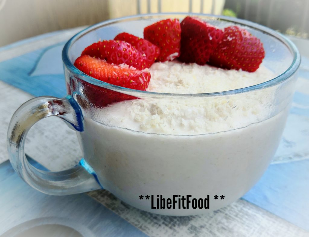 La mattina ho decorato con cocco rapè e fragole fresche.