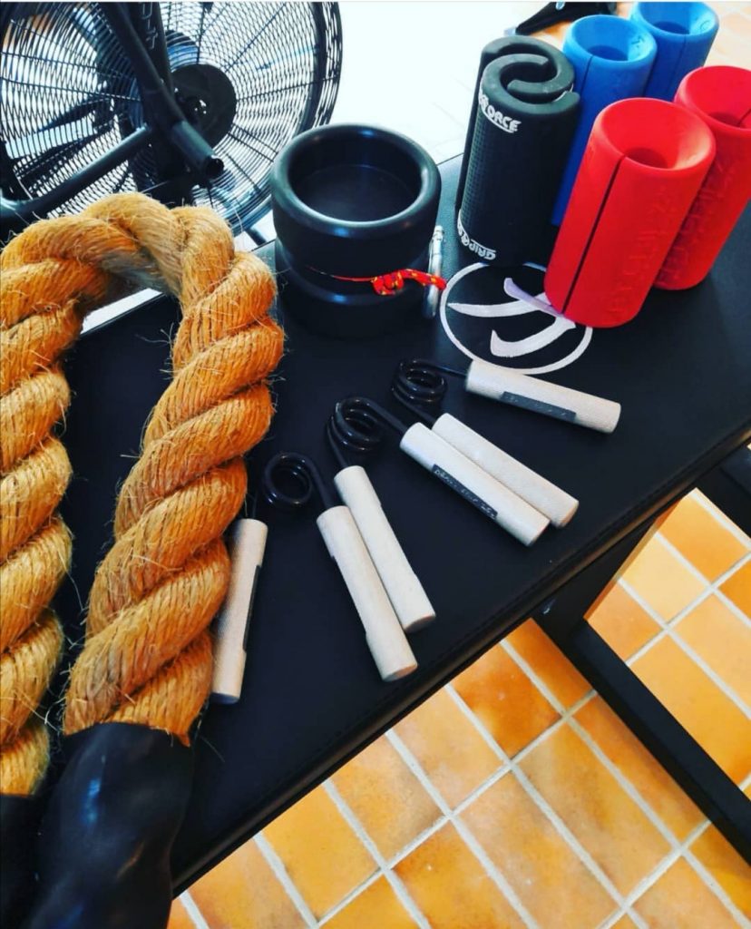 Qui sotto una foto con alcuni esempi di attrezzatura specifica per il grip training.