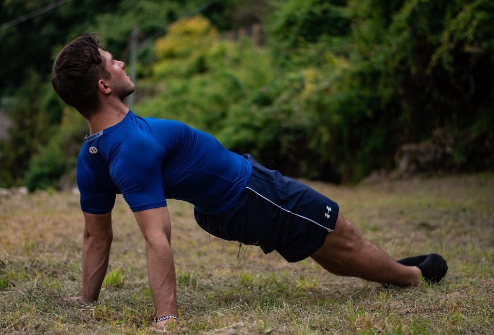 Un esercizio che chiama in causa il retto addominale, ma anche diversi muscoli stabilizzatori del corpo. La posizione è quella del plank, ma al contrario. Partiamo dal basso, con le gambe che sono tese e parallele al pavimento, con i talloni a fare da appoggio al pavimento. La parte superiore del corpo, invece, appoggia sulle mani ,braccia completamente tese e torace bene in alto. La testa è sollevata, ed è in linea con il corpo e da questa posizione si attiva l’addome, mantenendo la postura per il tempo necessario, prima di tornare ad una posizione comoda.