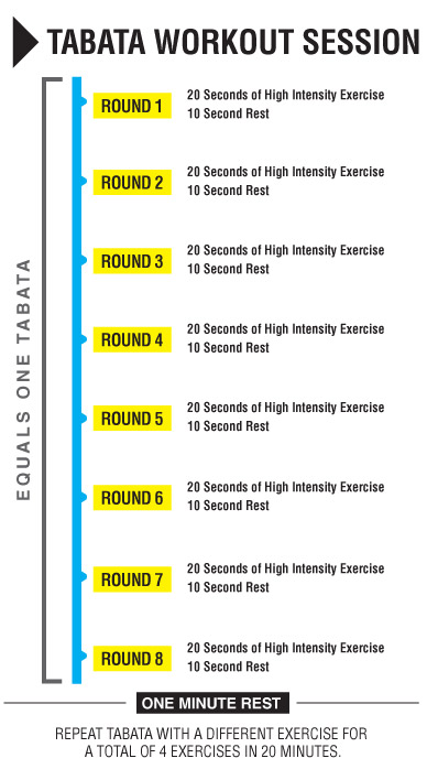 Il metodo Tabata training venne concepito nel corso di una ricerca scientifica del 1996 dal Dr. Izumi Tabata e il suo team presso il National Institute of Fitness and Sport di Tokyo. L’équipe giapponese stava analizzando dei protocolli di allenamento e il loro effetto sui sistemi energetici degli atleti con l’obiettivo di trovare il modo di migliorare il condizionamento anaerobico e aerobico. Essi paragonarono due diversi protocolli, la normale attività aerobica a frequenza costante (70% VO2max per 60 minuti) su cicloergometro, e un protocollo intermittente su cicloergometro della durata di 4 minuti che nelle fasi di picco ad alta intensità raggiungeva valori sovramassimali sul consumo di ossigeno. Il protocollo sfruttava sia i meccanismi aerobici che anaerobici e prevedeva 20 secondi di prestazione ultraintensa ad intensità sovramassimali (circa 170% VO2max) per 20 secondi, alternata ad un periodo di riposo di 10 secondi, in un ciclo consecutivo ripetuto più volte la cui durata raggiungeva i 4 minuti (7-8 cicli). Il gruppo che svolgeva lo steady state ottenne un aumento piuttosto significativo del VO2max(10% circa) ma non aveva ottenuto alcun beneficio sul miglioramento della capacità anaerobica. Il gruppo che sperimentò il Tabata ottenne un incremento del 14% VO2max e un incremento del 28% della capacità anaerobica.