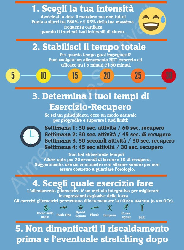 Se l’intensità di una sessione di HIIT è elevata la durata sarà conseguentemente breve perché non si può mantenere a lungo un livello di esercizio elevato.